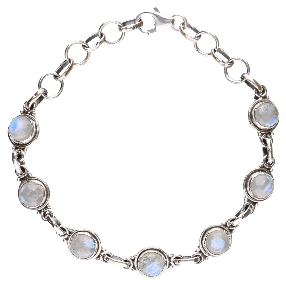 Pulseira com círculos de pedra da lua em prata de lei 925