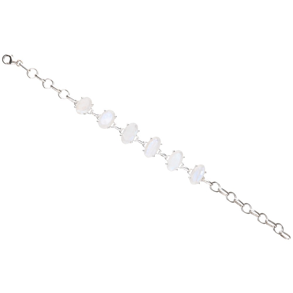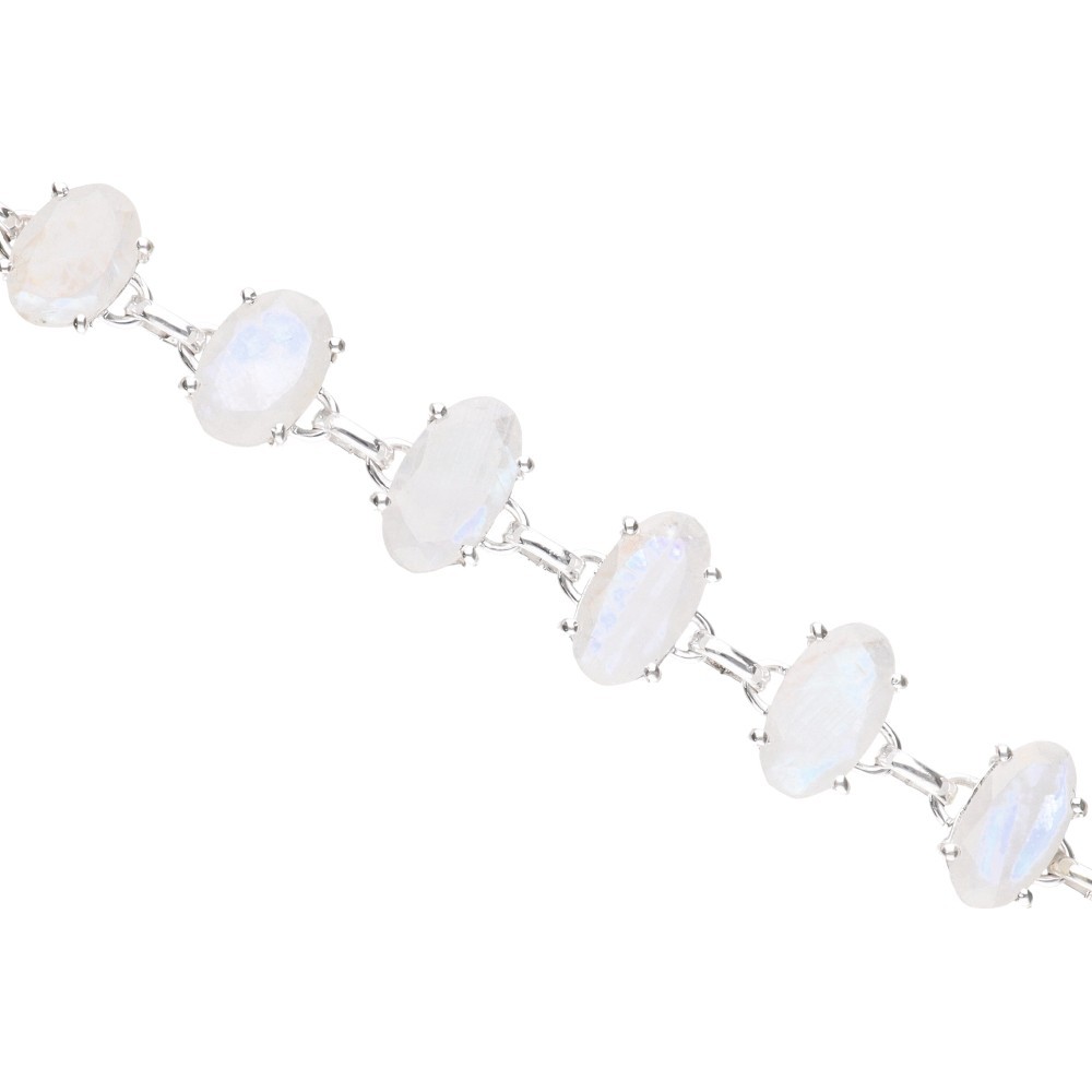 Pulseira de prata esterlina 925 com pedra da lua facetada