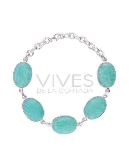 Pulseira amazonita grande em Prata de Lei 925