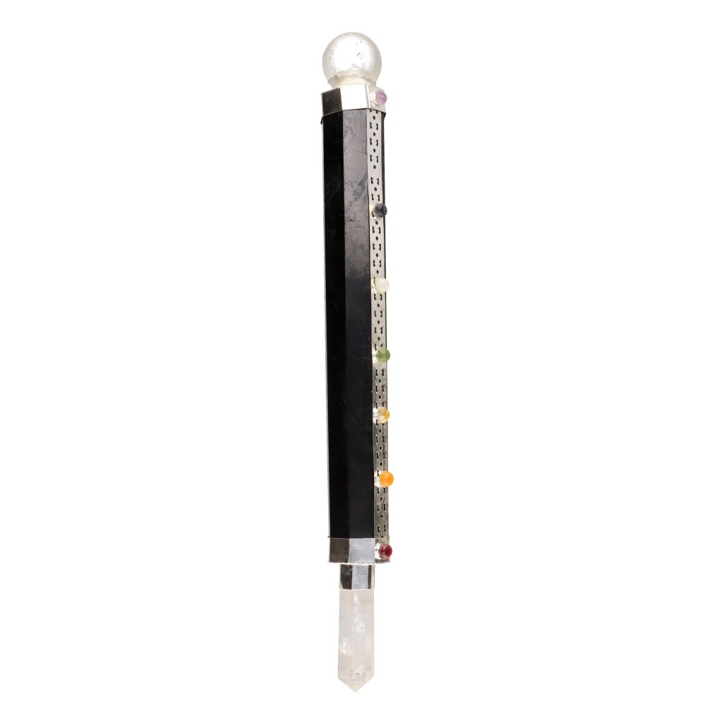 Shungite e Quartz Channeling Rod com Chakras em Sterling Silver 925