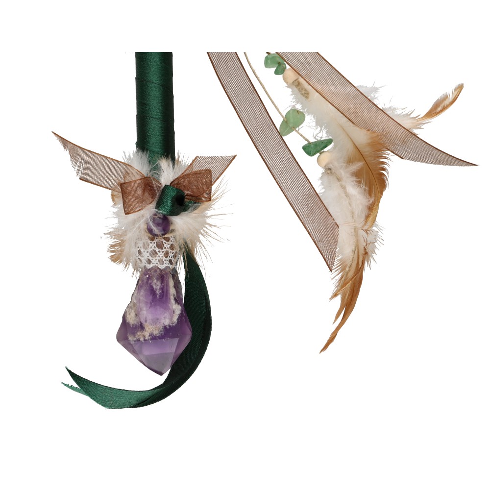 Varinha de condão em ametista Chevron com coruja de jaspe sanguíneo