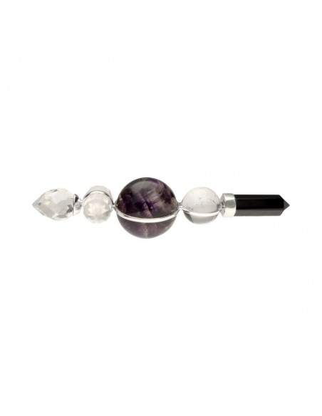 Shungite, Quartzo e Ametista Canalizando Rod em Sterling Silver 925