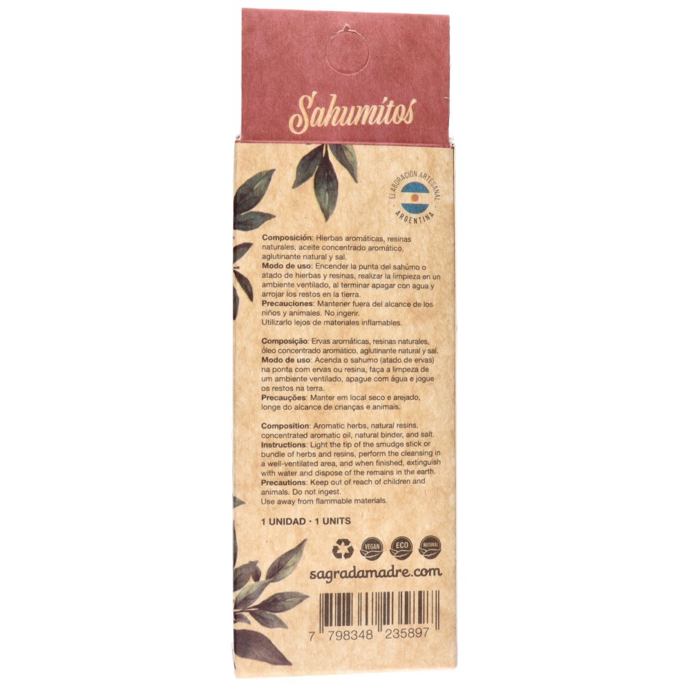Composición: hierbas aromáticas, resinas naturales, aglutinante natural y aceites esenciales.