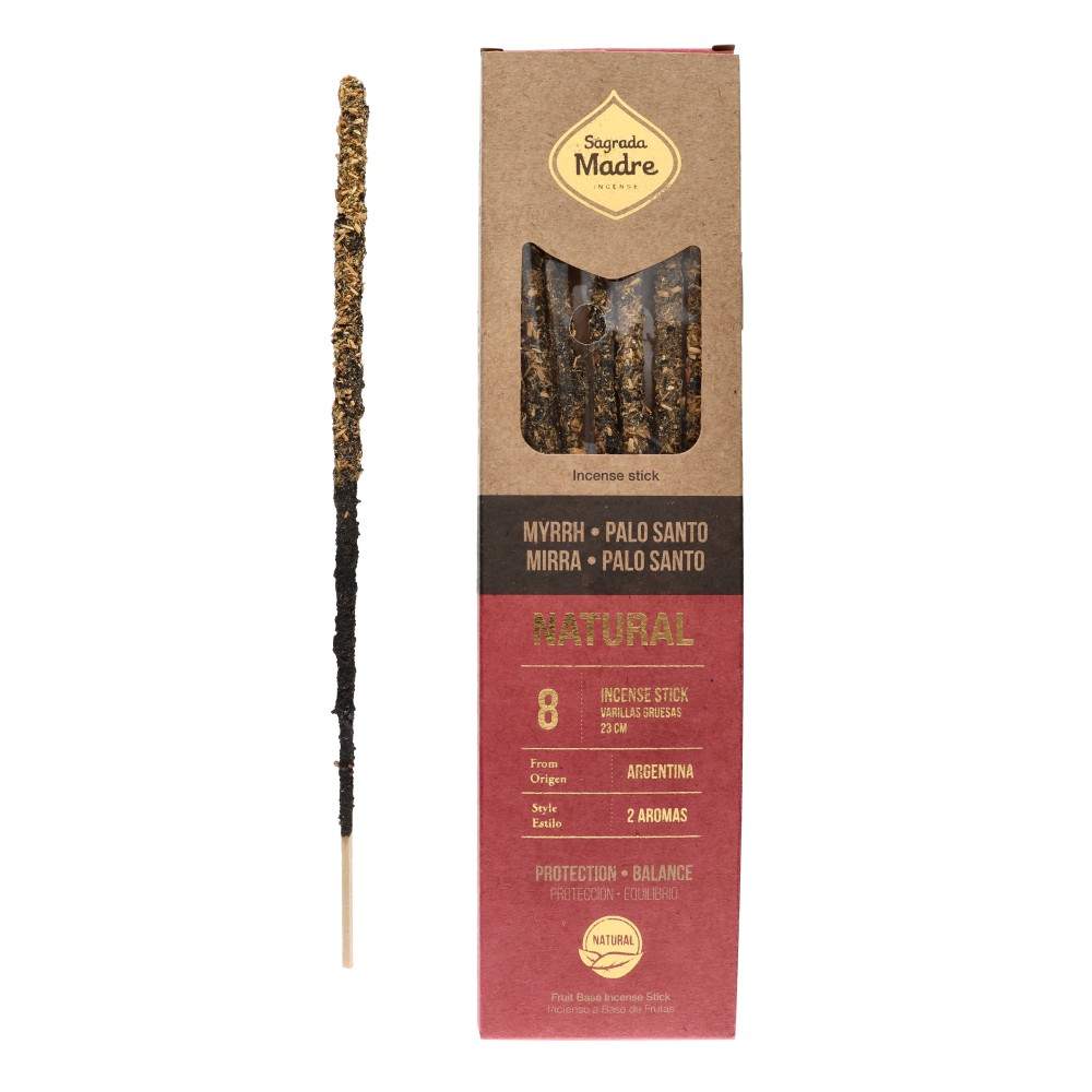 El humo del sahumerio de Mirra y Palo Santo juntos atraen energias positivas y armoniosas. La Mirra suma su poder de renovación, generando calma, tranquilidad y prosperidad a todas las personas que prueben estas fragancias.