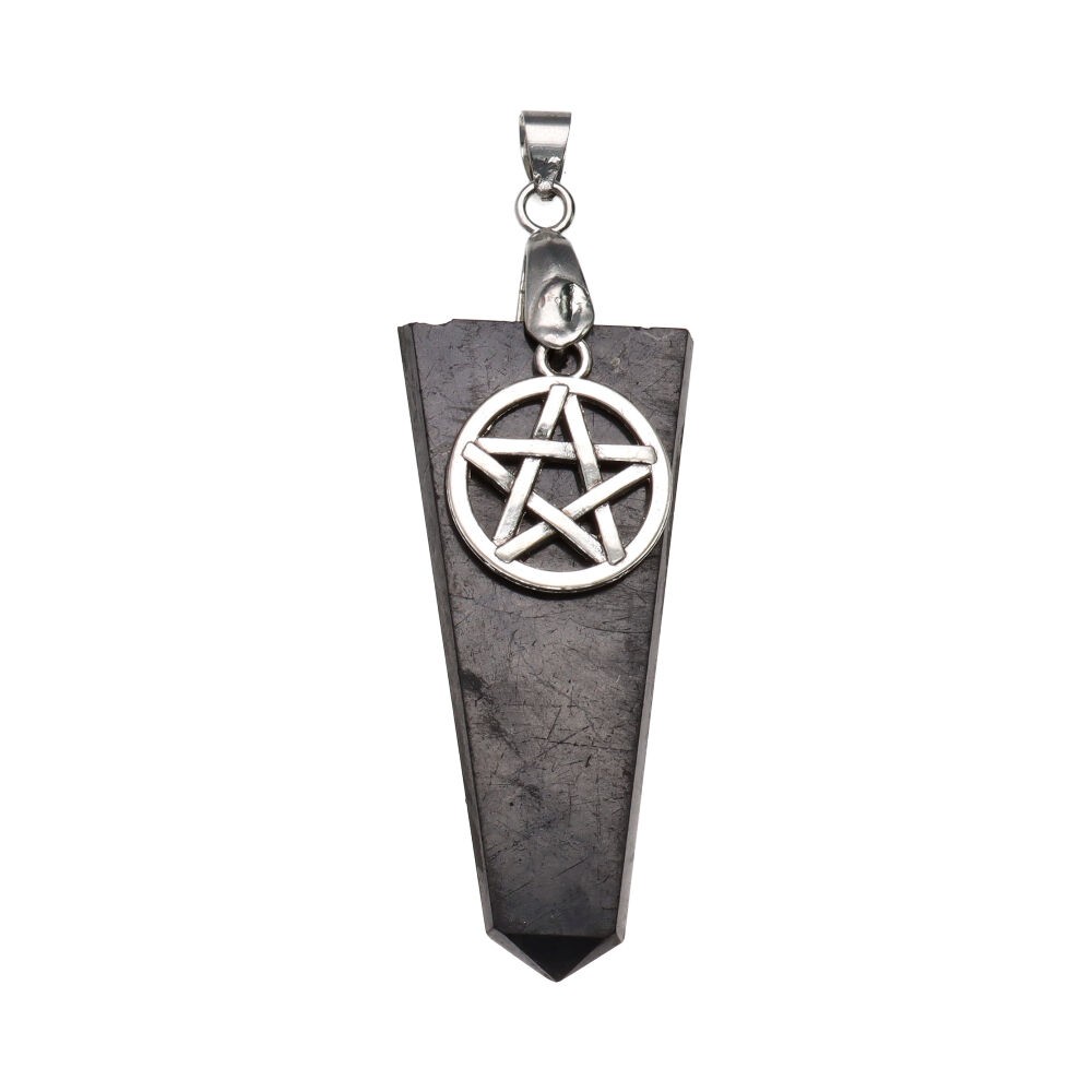 Colgante Plano Shungit con Pentagrama en Baño de Plata