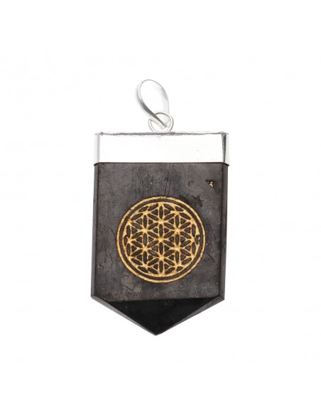 Colgante de Shungit Flor de la Vida en Baño de Plata