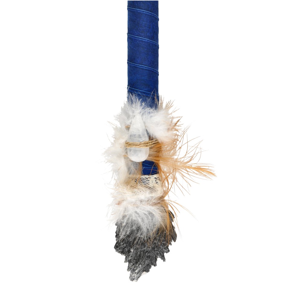 Vara de Poder de Cianita Negra y Punta de Cuarzo